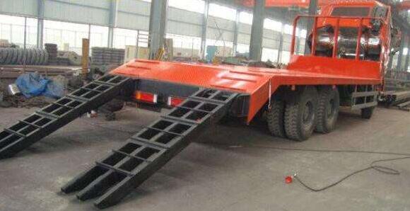 第一步:觀察裝卸場(chǎng)地,盡量做到周邊無(wú)遮擋物、上方無(wú)高壓線,前后無(wú)過(guò)往車輛。并在上下板車區(qū)域前后100m處放置安全提醒標(biāo)志。