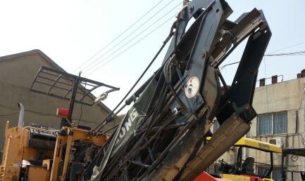 銑刨機(jī)吊起高過(guò)板車平板高度,吊車不動(dòng)板車向后倒,使銑刨機(jī)落至板車平板中間,不得偏向一側(cè)。